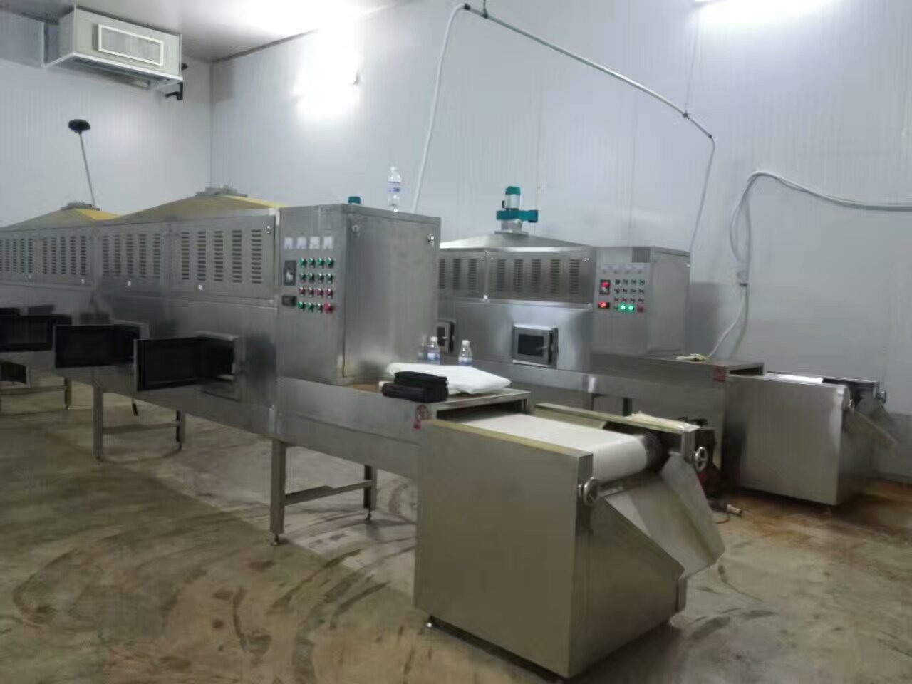 Microwave is tunnel conveyor belt type, dry continuously. During drying process, microwave also have sterilization function.