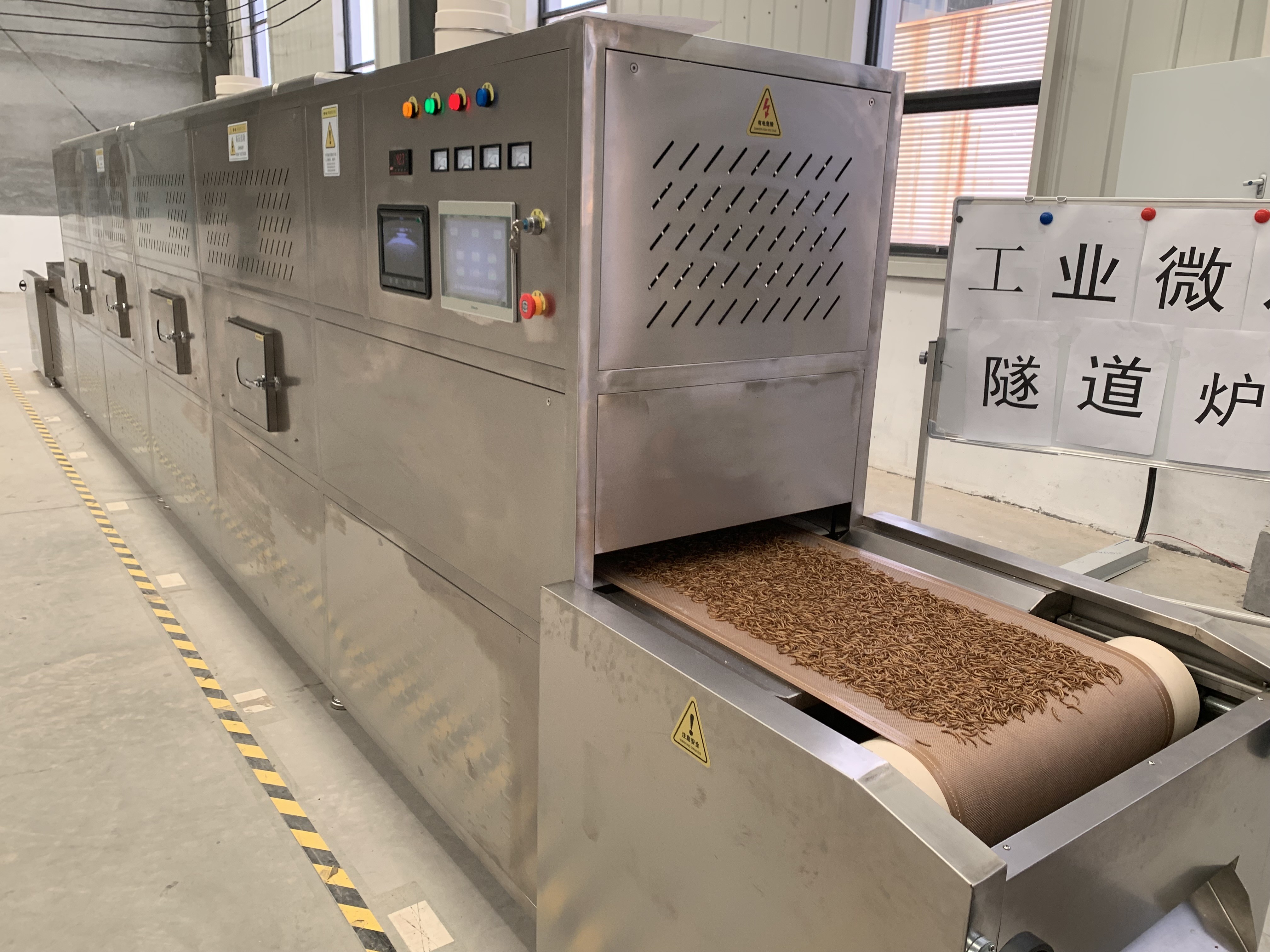 Microwave yellow mealworm drying equipment has the advantages of fast drying speed, simple operation, high automation, high efficiency and energy saving. In addition, the sterilization effect of microwave yellow mealworm dryer is extremely good (has been verified by food related departments), so it can fully meet the deep processing requirements of yellow mealworm.